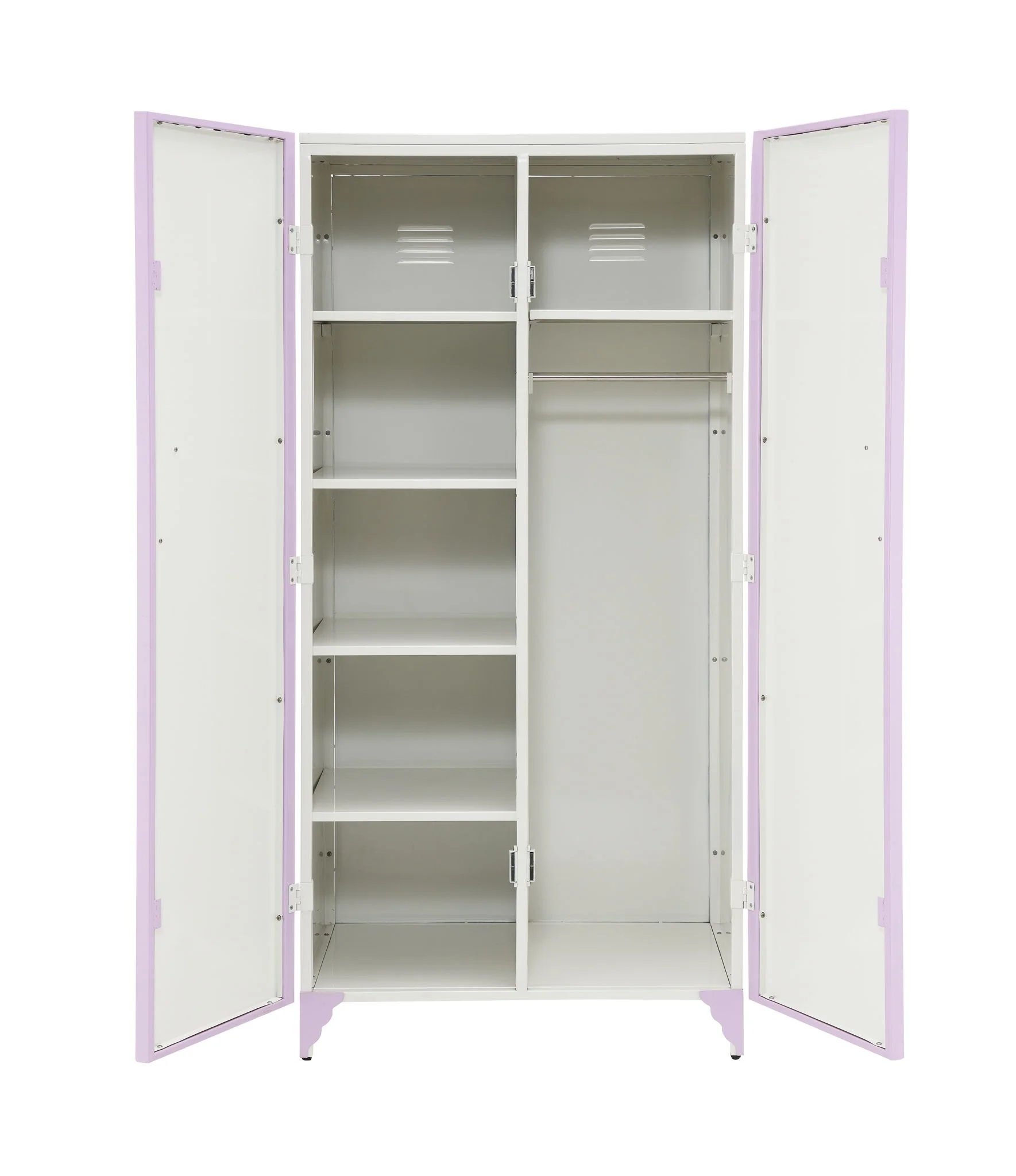 - Durable Metal Construction: Made with a sturdy metal frame, powder-coated in white and purple PU leather, this wardrobe ensures durability and long-lasting beauty.
